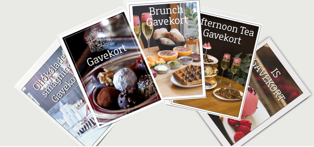 Giv en oplevelse til en du holder af. Der er masser af chokoladeoplevelser at vælge imellem – lige fra den overdådige Afternoon Tea, vores populære Chokoladebrunch, eller vores lækre is univers. Du kan selvfølgelig også give et helt almindeligt gavekort. Du kan enten vælge et fysisk eller et elektronisk gavekort. Og vi vedlægger gerne en personlig hilsen.
