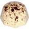 Lys chokoladetrøffel med Brandy. Overtrukket med lys chokolade og pyntet med mørke chokoladepletter.