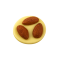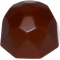 Mørk chokoladeganache blandet med goldcreme, pyntet med mørke chokoladepletter på en bund med hasselnøddekrokant med kaffe. Støbt i Gold chokolade.
